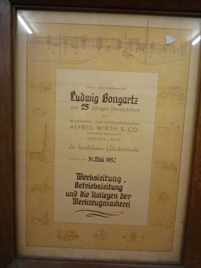 Unserem lieben Arbeitskameraden Ludwig Bongartz zum 25 jährigem Dienstjubiläum bei der Maschinen- und Bohrgerätefabrik Alfred